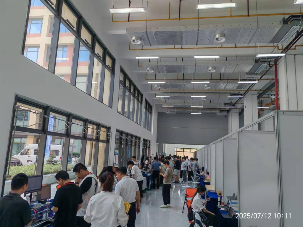 竞赛答辩环节在湖北理工学院J2教学楼智慧教室有序进行。现场聚焦物理实验创新成果,尽显科研探索活力。选手立于讲台,借助PPT清晰呈现研究逻辑,细致阐述创新设计。评委展开提问,与选手进行深入交流。此次答辩不仅是参赛选手展示科研成果的舞台,更通过专业问答与思路碰撞,促进学科知识交流。在湖北理工学院工程实践创新中心Z1楼一楼,竞赛组委会展示参赛作品,师生现场感悟大学生物理实验创新的魅力。