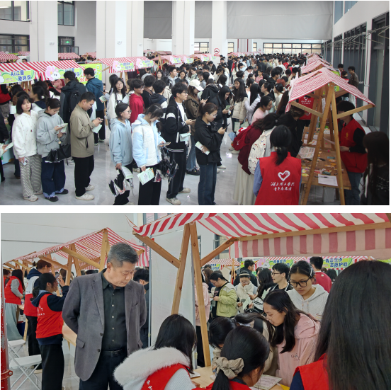 本次公益集市以“学雷锋,做志愿,共同奋进‘十五五’”为主题,汇聚全校29个特色志愿摊位,覆盖思想成长、文体活动、实践实习三大类别,融合技能服务、健康医疗、文化艺术、科普宣讲、科创展示等八大领域,涵盖志愿招募、反诈普法宣传、家电义修、非遗手作、环保创意等多项内容。各教学院志愿服务队集中亮相展示特色志愿服务成果,吸引学生6000余人次参与,现场氛围热烈有序。